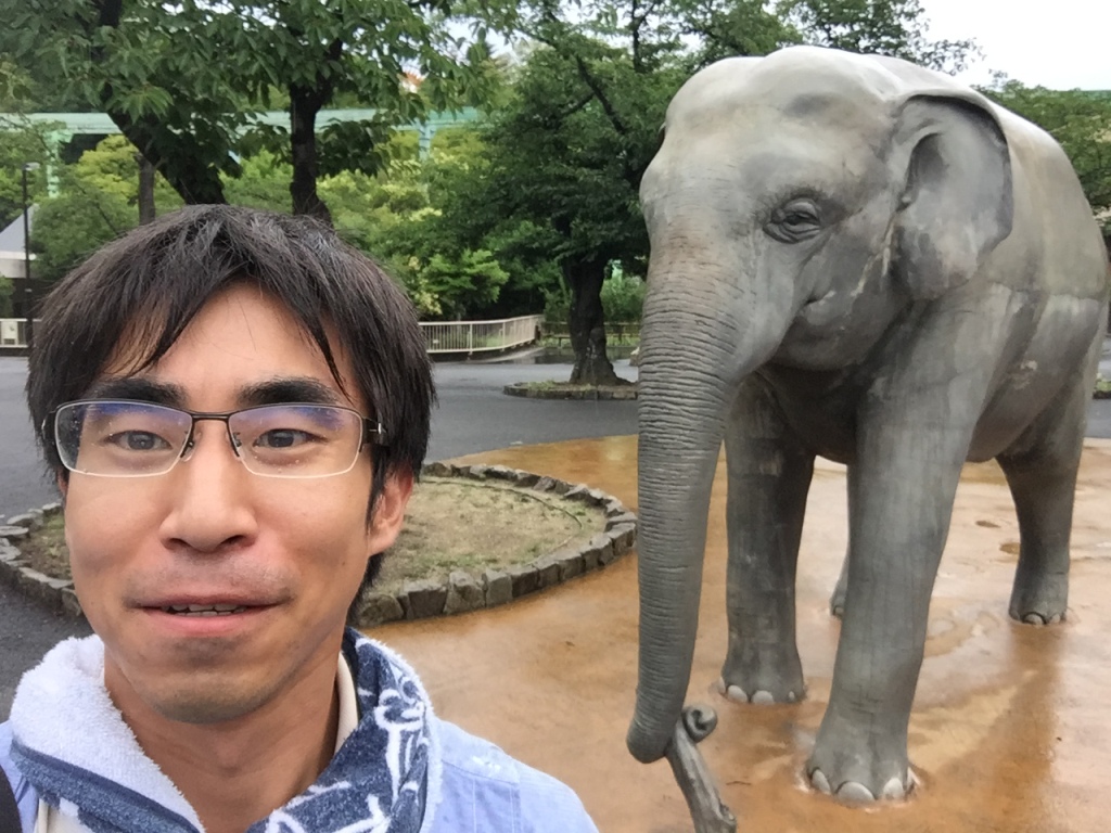 アジアゾウの近くには、ゾウの像があり、記念撮影に人気のスポットになっています。