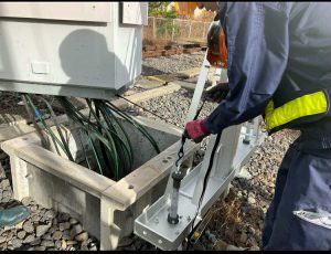解決1 ケーブルを外すことなく器具箱を吊り上げて基礎を交換できます