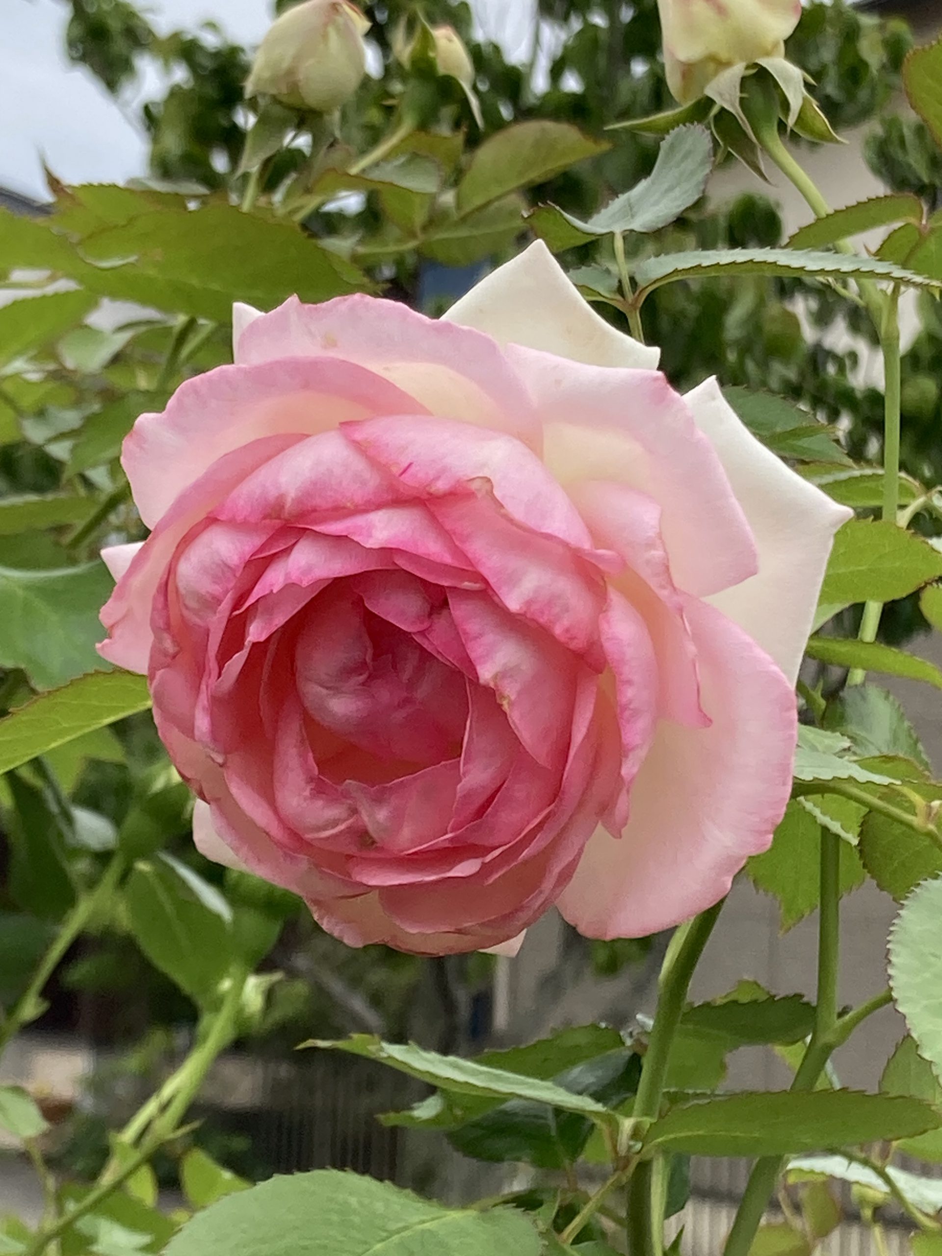 庭にはバラの木があり、今は新芽が少しづつ伸びてきて