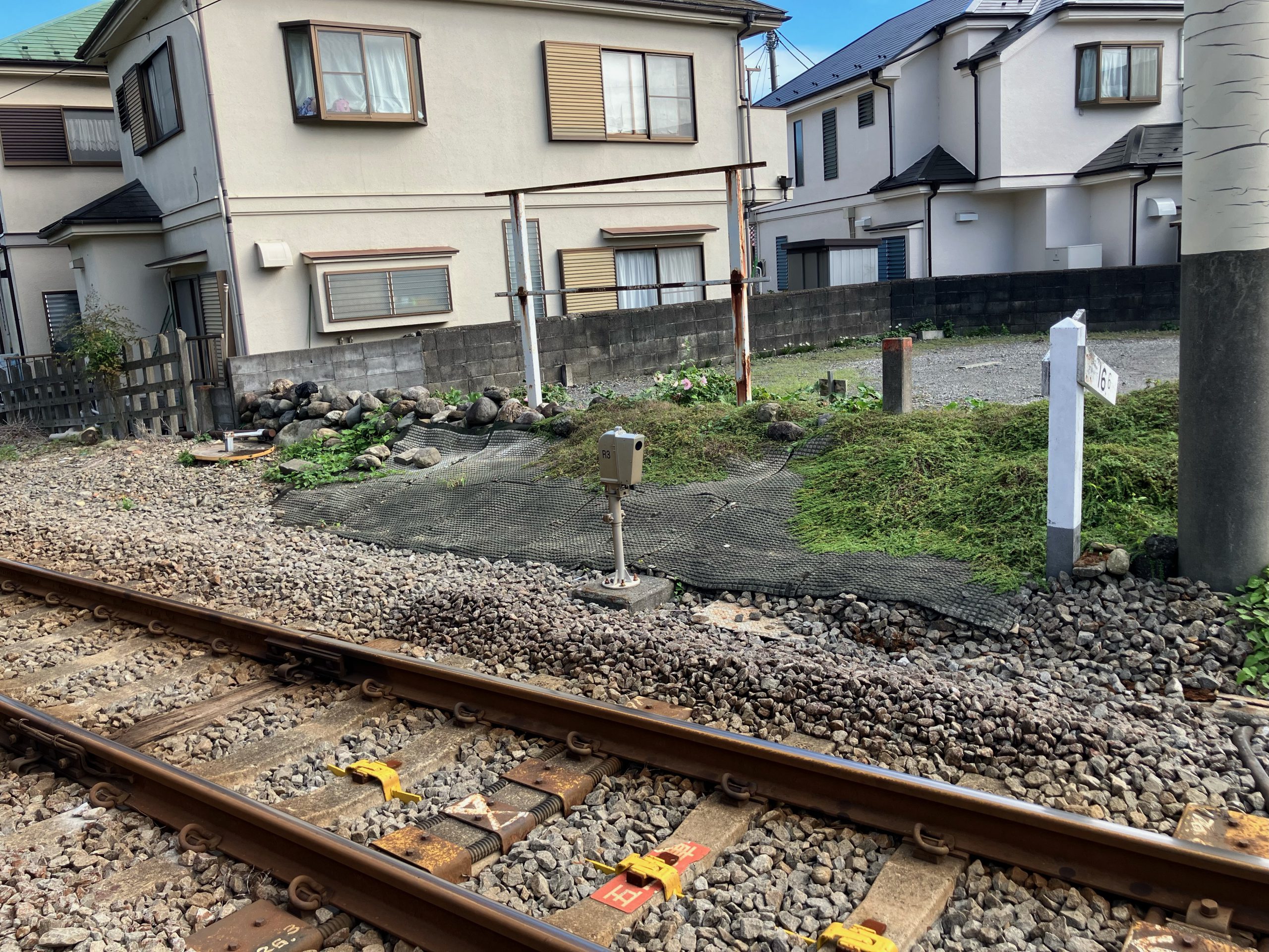 色は黒ずんでしまっていますがJRC防草用コンクリートマット自体は劣化することなく使用できています。
