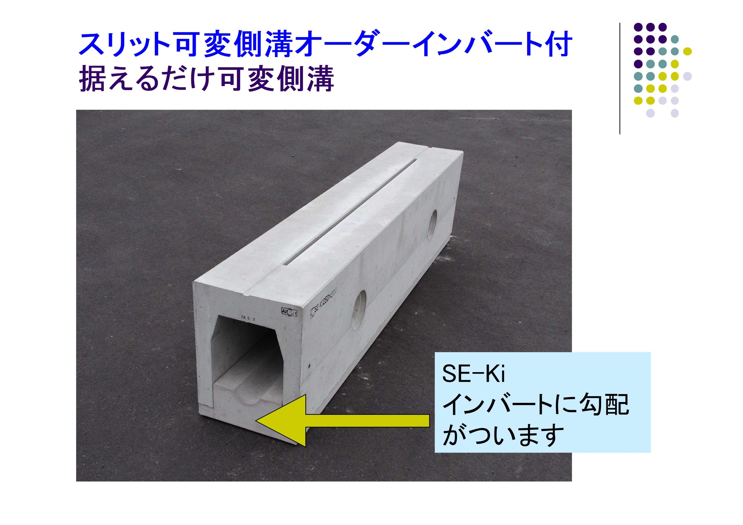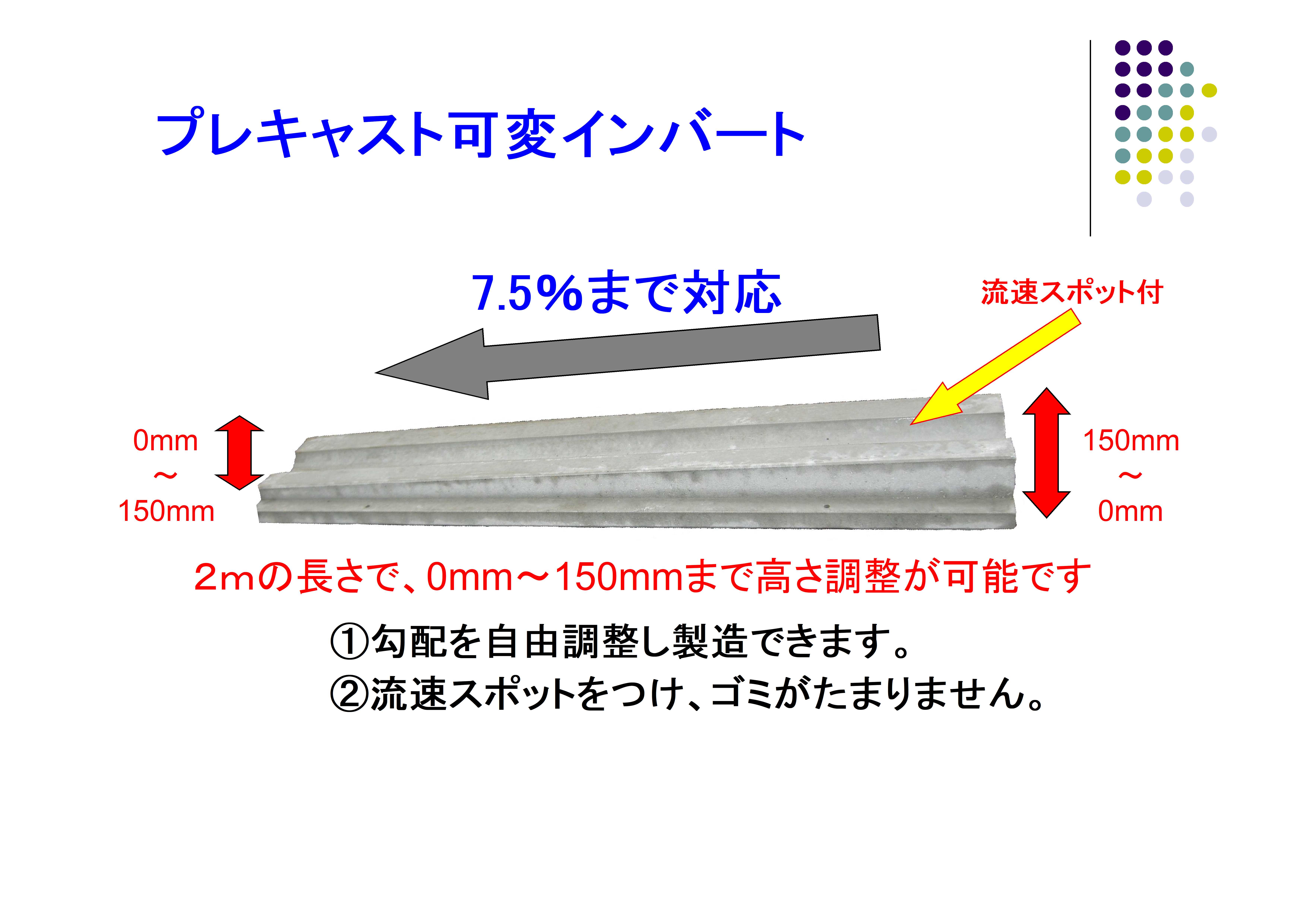 現場で生コンを使用しない自由勾配側溝の説明です。