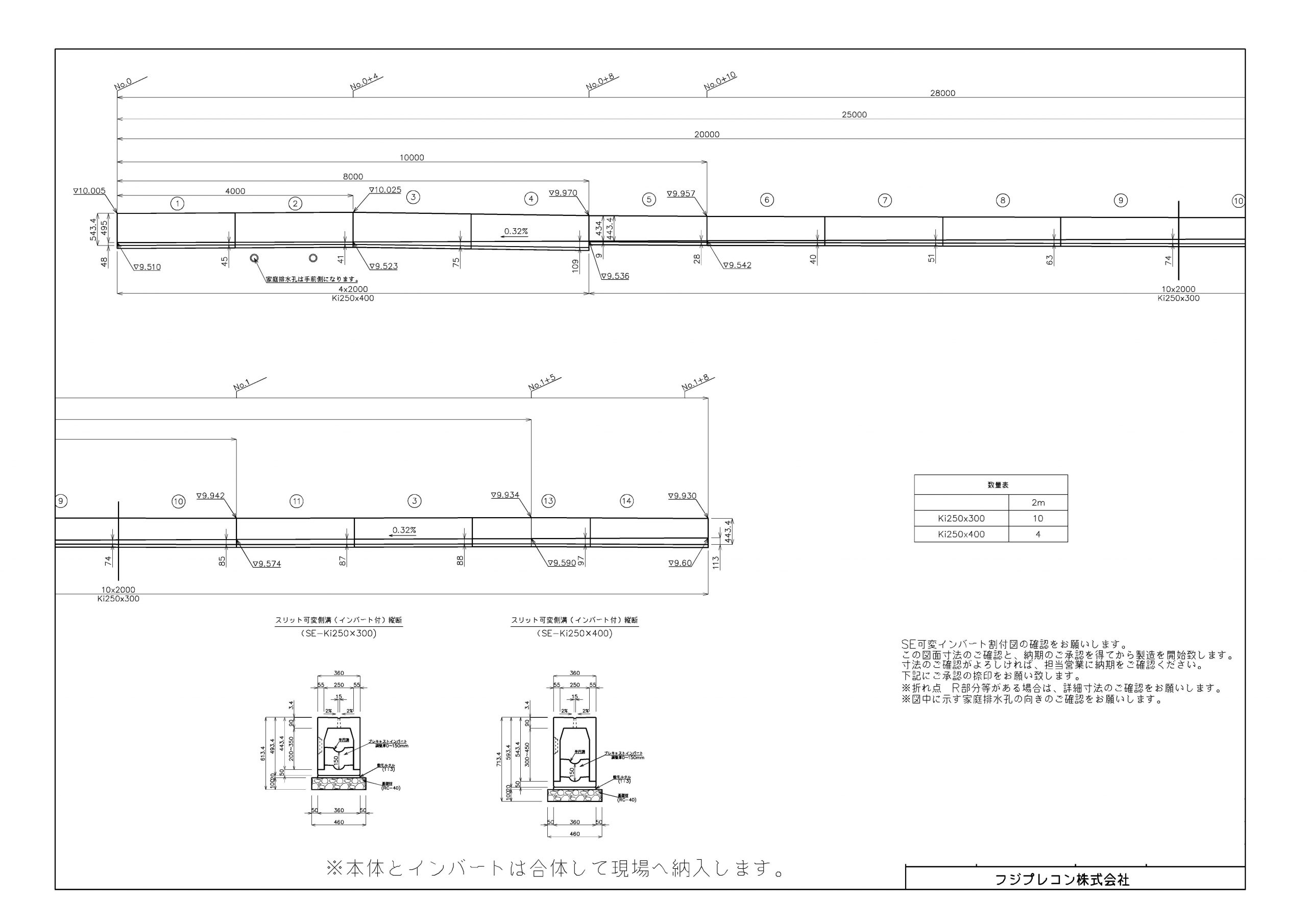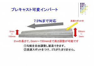 自由勾配側溝を現場勾配に合わせたプレキャストのインバートで製品を作り尚且つ本体と一体型にして現場に納入する製品