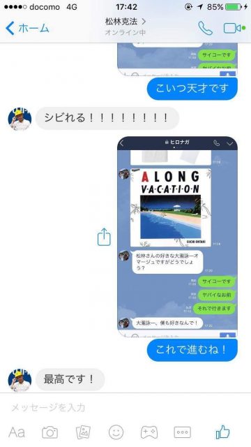 僕の大好きな大滝詠一をモチーフに考えてくれたみたいでメチャうれしい。