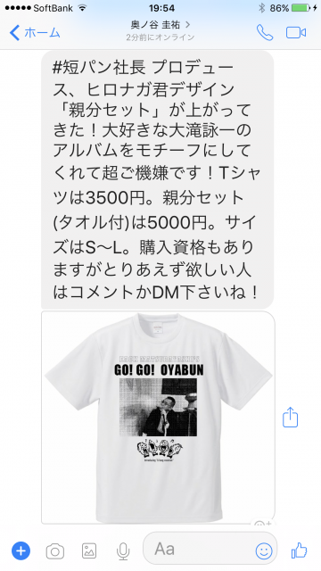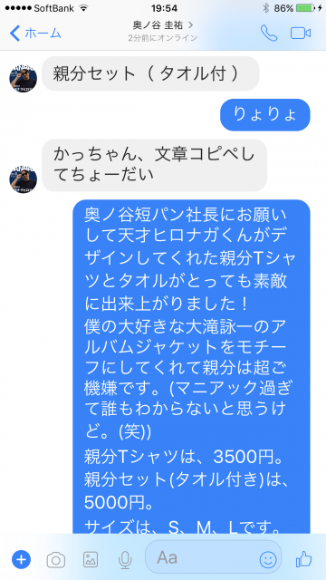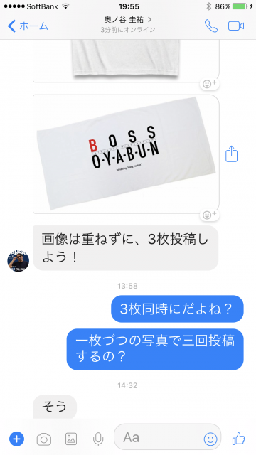 投稿文章を短パン社長にメッセンジャーで、、、