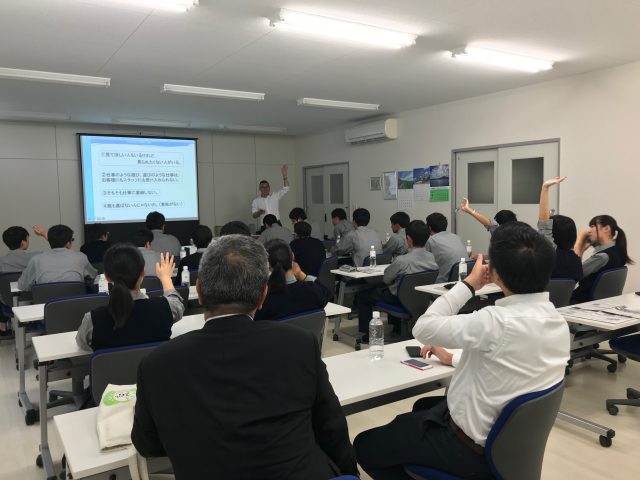 まず最初にフジプレコンに入社して1・2年目のスタッフに就職する時と就職してからの思いを生徒さんたちに話してもらいました。まあ、たくさんの学生さんの前でたじたじでしたけどね。(笑)