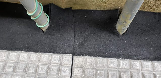 僕は雑なくらいに草刈って防草マットを敷きましたがコチラのお宅はかなりきれいに草を処理してから防草マットをしいてますね。さすがです。