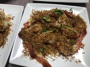 エビフライが好きな方も多いと思いますが自分も大好きです。タルタルソースを付けてレタスなどの野菜と食べるとホント美味しいですよね。そんなエビフライを油で揚げずに作るなんちゃてエビフライです。まずはパン粉をフライパンで茶色く火が通るまでカリカリに炒めます。炒めているパン粉に下味で香辛料入りの調味料をかけます。テレビで見たときはクレイジーソルトでしたが家にはなくバジル入りの塩で代用しました。次にエビをボイルしてぷりぷりイメージで火を通します。そしたらこの料理は出来たも同然です。ボイルしたエビにタルタルをお好みでかけてその上から先ほど炒めたパン粉をかけるだけで出来上がりです。お好みでレモンやバジルなどを添えてお酒と一緒に良かったらどうぞ。暑い夏に油で揚げないエビフライ風よかったら食べてみて下さいね。たまにはいいと思います。